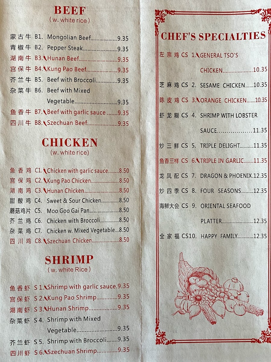 Served with fried rice and egg roll.