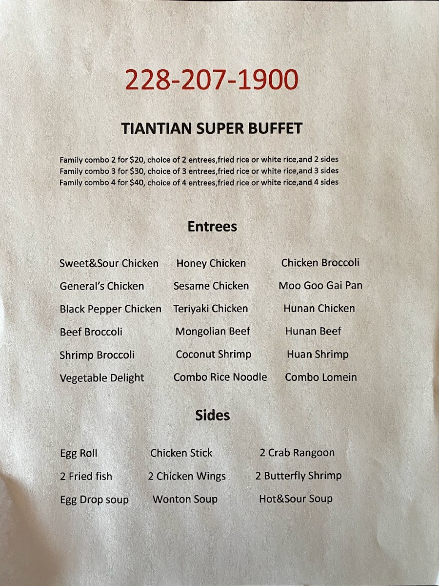 Tiantian Super Buffet Menu